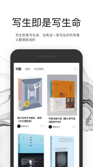 寫生啦可以幫助各位愛好美術(shù)寫生的人群在線進(jìn)行一站式學(xué)習(xí),這里你可以參加各種各樣的培訓(xùn)班,還能參加線上發(fā)布的各項(xiàng)活動,能與其它的繪畫生一起進(jìn)行繪畫交流。線上也有非常多的藝術(shù)家畫作供你欣賞,也能查看一些書籍等。歡迎有需要的朋友下載使用!