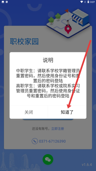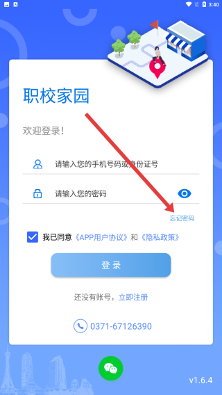 2、在職校家園登錄頁面中,若忘記了密碼,可以點擊下方的忘記密碼按鈕查看解決方法。