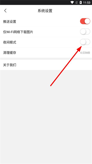 3、在系統(tǒng)設置界面,找到夜間模式選項,點擊其右側的開關按鈕,將其開啟,即可打開間模式。