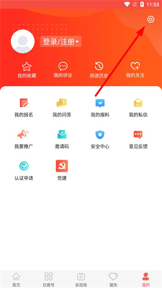 2、在個人中心界面,點擊右上角設置圖標,進入系統(tǒng)設置界面。