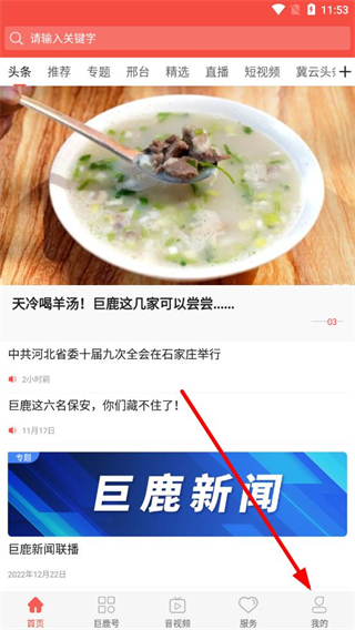 1、在冀云巨鹿首頁,點擊右下角我的按鈕,進入個人中心界面。