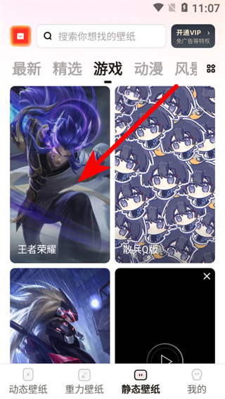 3、在游戲壁紙列表頁(yè)面,點(diǎn)擊想要設(shè)置的壁紙,如王者榮耀壁紙,進(jìn)入壁紙?jiān)斍轫?yè)面。