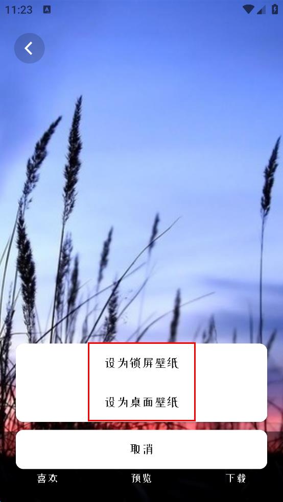 3、進(jìn)入壁紙?jiān)斍轫?yè)面后,會(huì)彈出操作選項(xiàng),選擇“設(shè)為鎖屏壁紙”或“設(shè)為桌面壁紙”,按照提示完成操作,即可將選中的風(fēng)景壁紙?jiān)O(shè)置好。