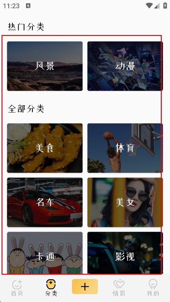 1、打開(kāi)壁紙軟件,在“熱門(mén)分類”或“全部分類”中找到心儀的分類并點(diǎn)擊,進(jìn)入需要更換的展示頁(yè)面,瀏覽眾多精美的壁紙。