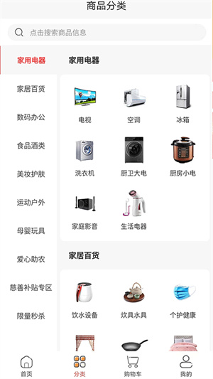 各種商品都可以輕松的買到的,家用百貨、美妝護(hù)膚、電器、母嬰玩具、零食酒水等,滿足了所有用戶的不同購(gòu)物的需求,而且都是可以保障是非常真實(shí)的商品,而且頁(yè)面設(shè)計(jì)是非常簡(jiǎn)單的,所有的用戶都可以直接的在不同的類別里面查找各種商品。