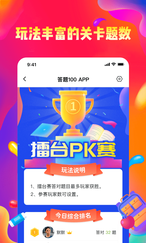 答題100是一個學(xué)習(xí)與答題互動玩法的工具,立志于成為快樂學(xué)習(xí)的打造者??梢詫?dǎo)入題庫的直播用答題平臺,支持上傳個人題庫,大量免費題庫任你選擇。