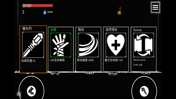 一款roguelike類的彈幕射擊游戲,畫風(fēng)十分的簡單,像素勾勒的簡筆畫,玩起來十分解壓。游戲中每一波你都會(huì)選擇一個(gè)新的技能強(qiáng)化升級(jí),并嘗試用瘋狂的構(gòu)建來打破游戲。