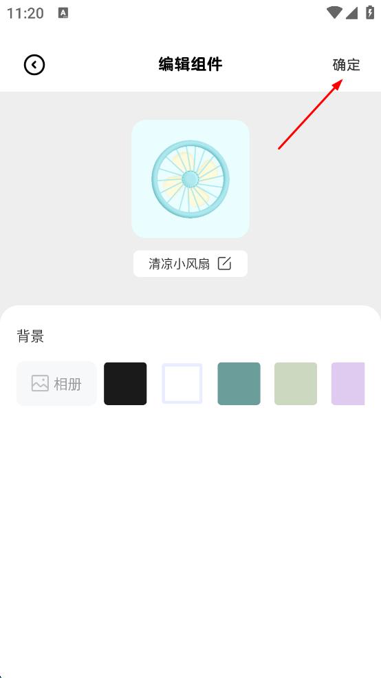 3、進(jìn)入組件編輯界面后,可根據(jù)需要選擇背景顏色等設(shè)置,設(shè)置完成后,點(diǎn)擊右上角“確定”按鈕,將該組件添加到桌面。