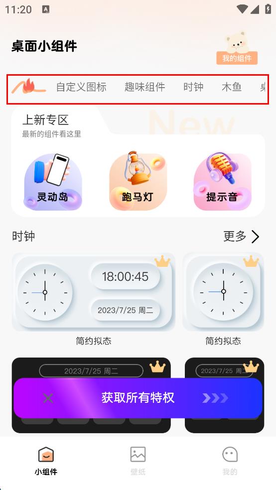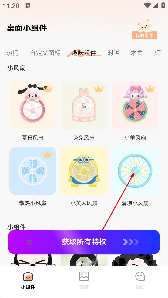 1、打開桌面小組件軟件,進(jìn)入主界面后,在上方的分類欄中,點(diǎn)擊“趣味組件”選項(xiàng),切換到趣味組件展示頁(yè)面。