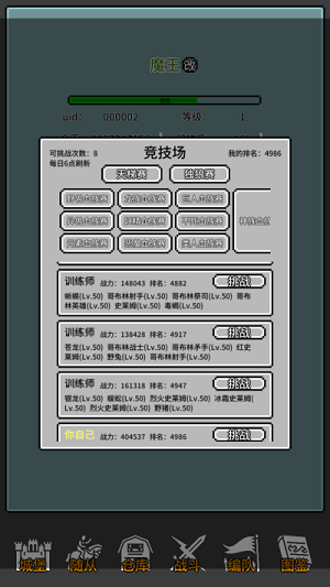 玩家在游戲里面來控制自己的角色進(jìn)行不斷的闖關(guān)和冒險(xiǎn)模式,開啟不斷的劇情和任務(wù)來完成,得到豐富的獎(jiǎng)勵(lì)升級(jí)和召喚更多的士兵出來,幫助我們攻打更多的城市,取得自己的地盤,得到一個(gè)有趣的冒險(xiǎn)游戲。