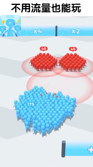 玩家在游戲里面來(lái)控制的士兵人數(shù)不斷的發(fā)育起來(lái),當(dāng)自己可以進(jìn)行一個(gè)戰(zhàn)斗的時(shí)候就可以和敵人來(lái)進(jìn)行pk,使用自己的人數(shù)優(yōu)勢(shì)來(lái)輕輕松松的戰(zhàn)勝敵人,還可以使用道具來(lái)為我們提供著一個(gè)幫助,可以快速的消滅敵人。