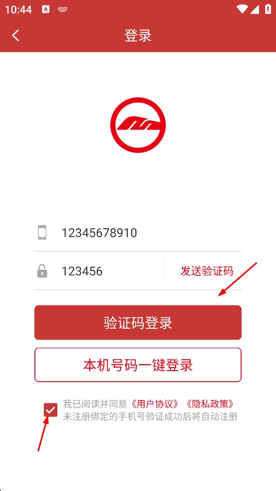 4、找到我已閱讀并同意用戶協(xié)議,隱私政策前的方框,點(diǎn)擊勾選,然后登錄。