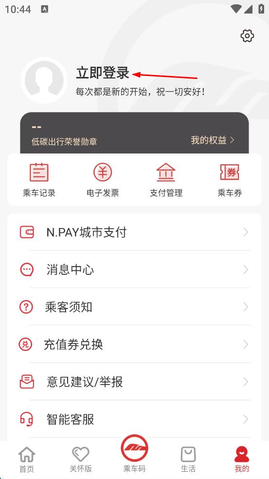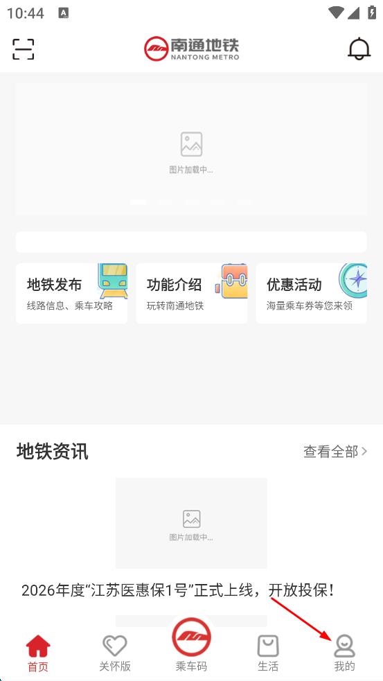 1、打開南通地鐵APP,在界面底部找到“我的”選項(xiàng),點(diǎn)擊進(jìn)入個(gè)人頁面。