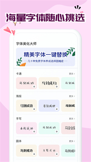 1、【字體美化】卡通體、手寫(xiě)體、海報(bào)體,多種字體供你選擇,換字體停不下來(lái);