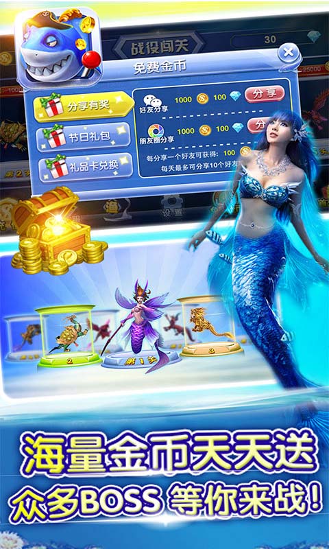真實(shí)還原街機(jī)捕魚(yú)100%李逵劈魚(yú)、金蟾捕魚(yú)等所有街機(jī)捕魚(yú)版本,同時(shí)增加了新的BOSS提升趣味性。滿屏爆發(fā)封鎖所有入口的“暴走”,穿越遮擋障礙零距離接觸的“追蹤”,漂亮的海島,搖弋著美麗的椰樹(shù)林,在她的附近的深海中,有著豐富的漁產(chǎn)。最神奇的美人魚(yú)也在這片神奇的海島。趕快拿起你的漁網(wǎng),參加到全民捕魚(yú)的行列!瘋狂的50倍大炮,讓你體驗(yàn)無(wú)盡的快感;漂亮的美人魚(yú),等著你的捕獲!立即加入全民捕魚(yú)的行列,