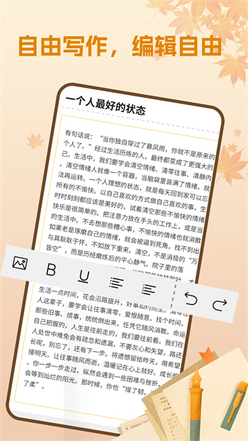 - 多種寫(xiě)作資料素材,讓你的寫(xiě)作觸手可及,每天都能在線(xiàn)創(chuàng)作,有需要隨時(shí)找回,告別找資料的煩惱。