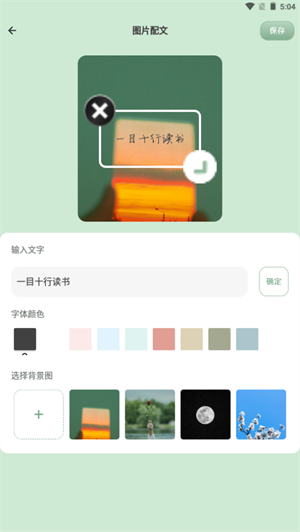 - 支持用戶自定義文字內(nèi)容,選擇字體顏色、背景圖等,輕松制作圖片配文,用簡單操作達(dá)到你的需求。
