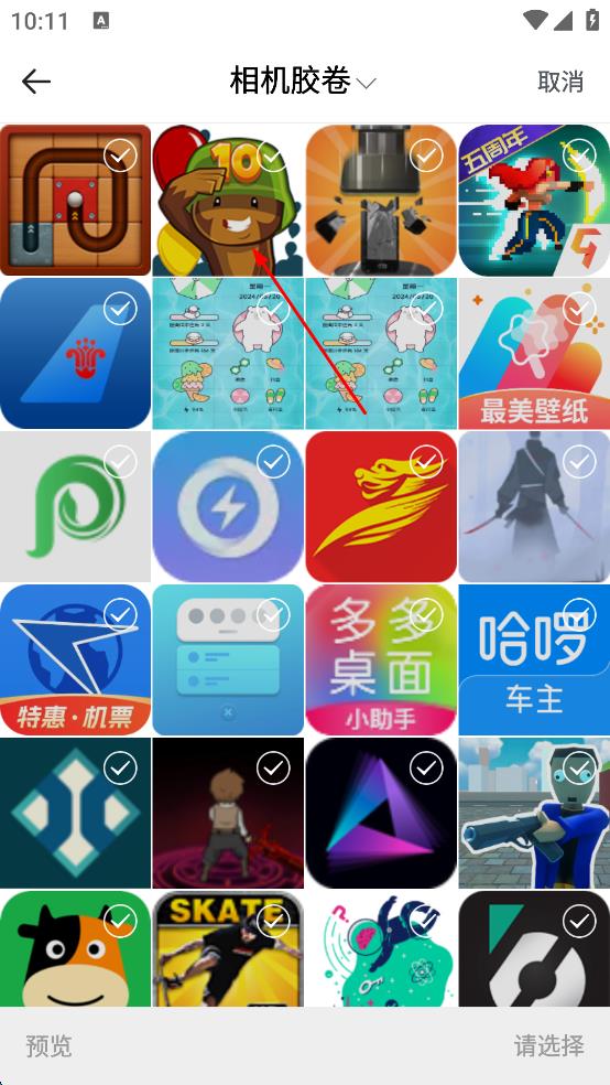 3、在相機膠卷頁面中,瀏覽眾多圖片,找到自己想要用來制作頭像的那張圖片,點擊選中該圖片,后續(xù)就可以對這張圖片進行頭像制作相關(guān)操作了。
