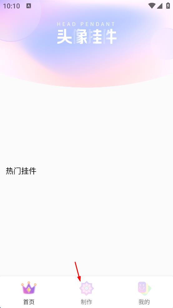 1、打開頭像掛件軟件,進入后在頁面底部找到“制作”選項,點擊“制作”選項,進入到頭像制作頁面。