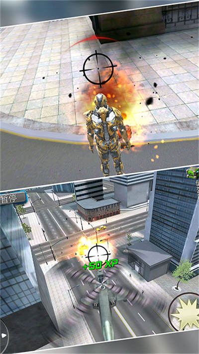 3、大家可以控制鋼鐵英雄在城市戰(zhàn)斗,消滅所有敵人你就是厲害的。