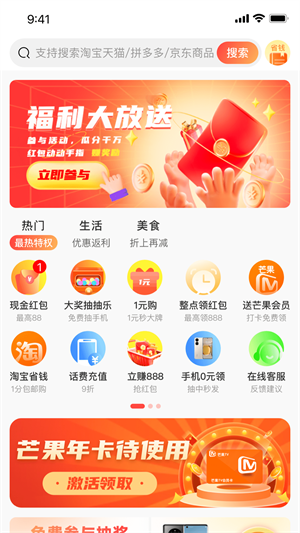 - 在這里不僅可以非常輕松的領(lǐng)取各種購(gòu)物優(yōu)惠券,還有很多的外賣優(yōu)惠和超市折扣等都有,大家也可以免費(fèi)的領(lǐng)??;