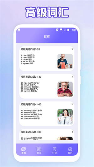 2、軟件為用戶提供了海量生活常用口語詞匯,讓用戶能夠隨時隨地學(xué)習(xí),擴(kuò)大英語詞匯量,軟件還有多種有趣的文章,讓用戶學(xué)習(xí)更有趣,說英語更輕松。