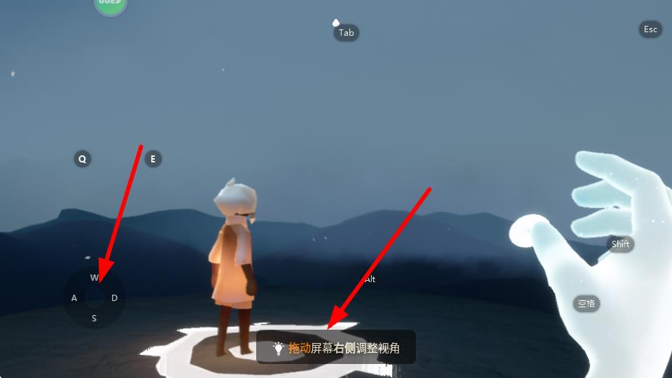 1、進(jìn)入游戲畫面后,若要移動角色,點擊左側(cè)虛擬按鍵,使用WASD對應(yīng)方向控制移動,同時可拖動屏幕右側(cè)來調(diào)整視角觀察周圍環(huán)境。