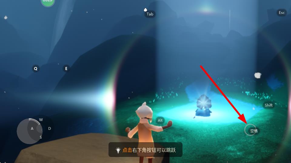 2、在探索過程中,當(dāng)遇到需要跨越地形時,如溝壑等,點擊右下角的空格按鈕,讓角色跳躍,以此順利通過障礙區(qū)域繼續(xù)前行。