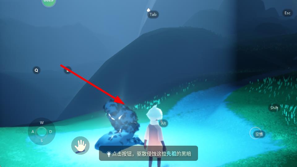 3、當(dāng)看到類似先祖被黑暗侵蝕的場景時,按照提示點擊相應(yīng)按鈕驅(qū)散黑暗,完成互動后,通常就能找到通往遇境的路徑,順利進(jìn)入遇境。