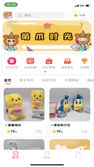 萌爪時光是由真正的機器控制,有各種各樣的娃娃,新玩家注冊搶娃娃并獲得游戲錢,用戶可以真正享受到在商場挑選玩偶的體驗,并將捕獲的玩偶快遞回家。