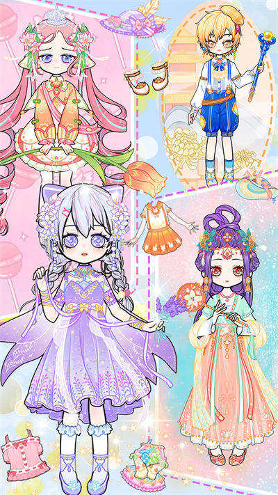 1、多種人物角色自由搭配,游戲內(nèi)有很多可愛的少女,玩家可以自由選擇少女來進(jìn)行服裝搭配;