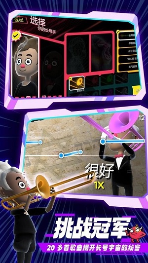 1、玩家在游戲中是長號冠軍大師,玩得開心,完成具有挑戰(zhàn)性的任務,學習音樂知識 怎么玩;