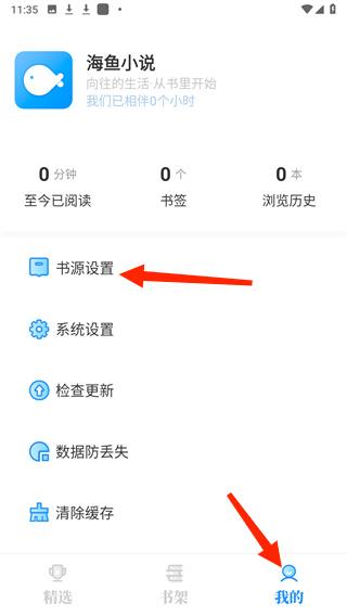 1、通過(guò)本站下載海魚(yú)小說(shuō),打開(kāi)后,分別選擇我的進(jìn)入個(gè)人中心,然后打開(kāi)書(shū)源設(shè)置;