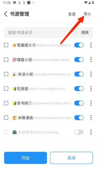 2、在書(shū)源管理頁(yè)面中,選擇右上角的導(dǎo)入;