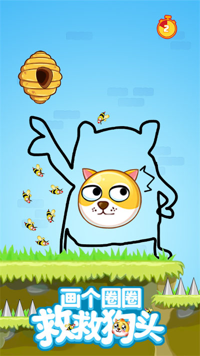 1、仔細觀察周圍的情況,玩家需要讓線條包住狗頭,從而保證狗頭的安全,讓它不被蜜蜂蟄到;