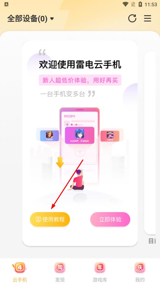 1、打開雷電云手機(jī)App,在主界面點(diǎn)擊使用教程按鈕,可進(jìn)入新手教程頁(yè)面。