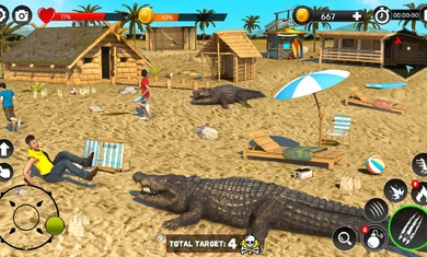 饑餓的鱷魚游戲游戲是一款休閑的動(dòng)作游戲,玩家進(jìn)入游戲變成鱷魚,來到一個(gè)小島上,進(jìn)行各種操作和玩法,可以捕殺獵物和人,一步一步的吞噬食物,逐漸變大自己的體積,游戲里的陷阱很多,需要我們認(rèn)真識(shí)別,里面的場景也是非常的多的,可以盡情的開始探索,快來游戲里體驗(yàn)鱷魚的快樂。