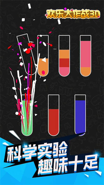 2、有趣別致的游戲玩法,玩家需要根據(jù)水的顏色來將它們進行區(qū)分,把水從一個試管倒入另一個試管當中直至一整個試管的水都是相同的顏色;