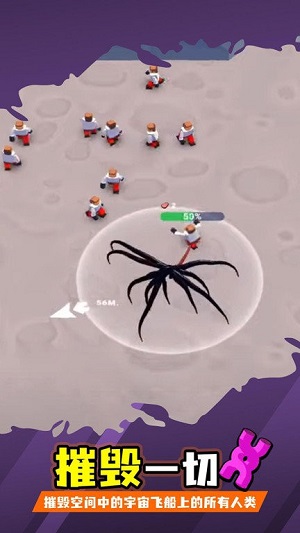 1、進(jìn)入游戲后,你就是一個(gè)漆黑黏糊糊的外星人,滑動(dòng)屏幕移動(dòng);