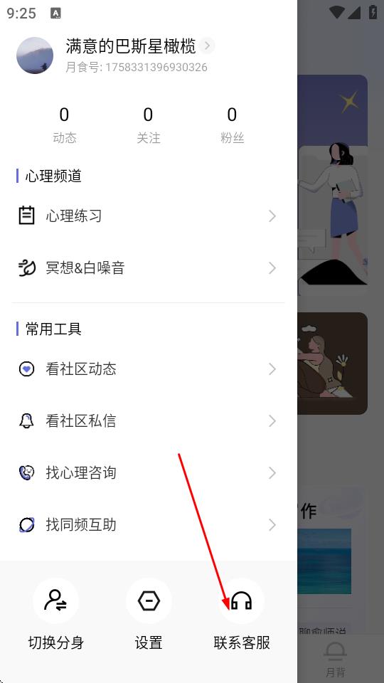 2、在個(gè)人菜單界面中,向下滑動(dòng)找到并點(diǎn)擊聯(lián)系客服選項(xiàng)。