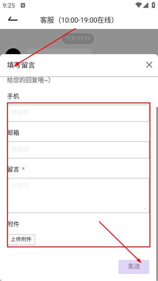 4、在輸入框中詳細(xì)填寫遇到的問(wèn)題,填寫手機(jī)、郵箱等信息,點(diǎn)擊發(fā)送,即可提交咨詢內(nèi)容等待客服回復(fù)。