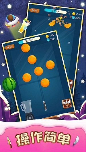 3、歡喜切水果是一款非常有趣的休閑切水果游戲。
