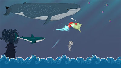 2、小心邪惡的魚,玩家要小心游戲中的鯊魚和石斑魚,它們可能會想要吃掉你;