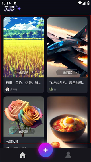 4、在靈感板塊可選擇稻田、戰(zhàn)斗機(jī)等作品,點(diǎn)擊“畫同款”使用靈感創(chuàng)作。