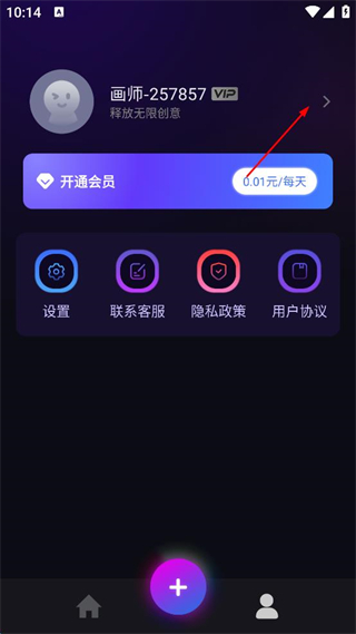 1、打開AI繪畫大師,找到并點(diǎn)擊底部的+按鈕。
