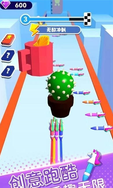 畫筆跑的快是一款讓玩家控制的五顏六色的水彩畫筆在遍地都是各種各樣的障礙物的賽道上進行跑酷的游戲,在這款游戲中,玩家么可以決定畫筆的行動路線和方向,躲開賽道上各種的障礙物的同時還需要不斷的收集更多的畫筆,收集更多獎勵更多。