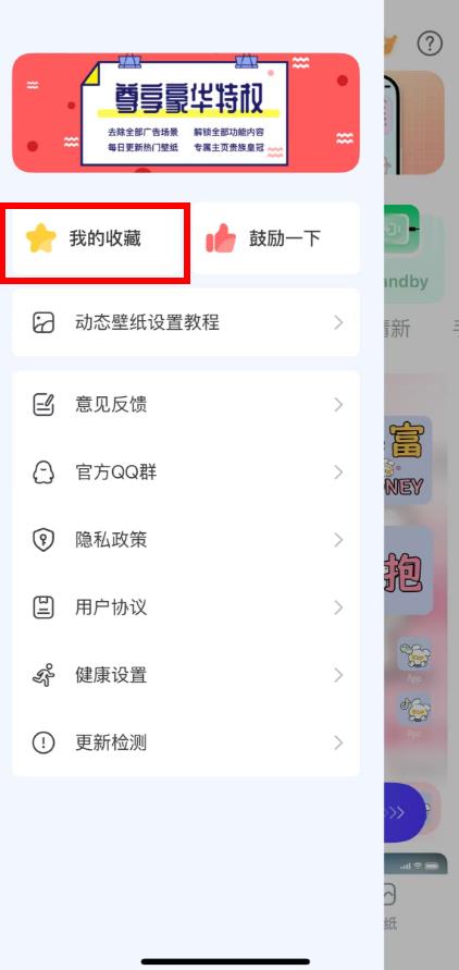 2、在彈出的側(cè)邊欄菜單中,點(diǎn)擊我的收藏選項(xiàng)。