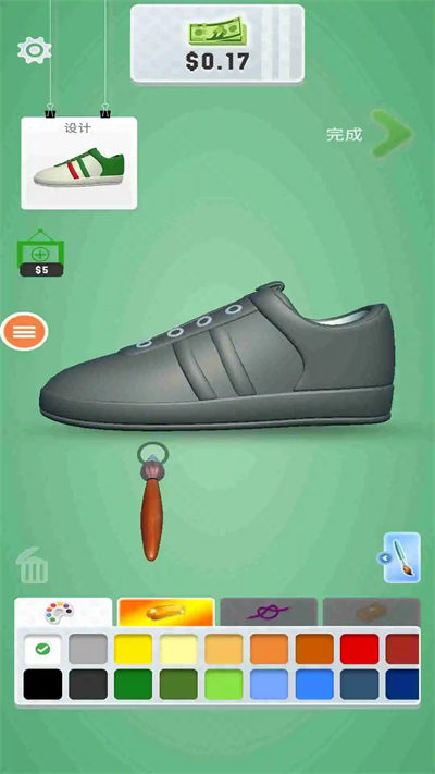 1、給鞋子進行上色,玩家想要設計好看的球鞋,需要給鞋子進行合理的色彩搭配,設計得越好看,賣的價錢就越高;