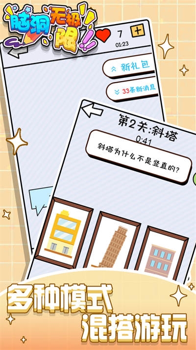 腦洞無極限是一款模式多樣的休閑游戲,這里有很多不同類型的關(guān)卡,操作起來也非常簡單,十分適合在空閑時間放松身心,體驗一番。