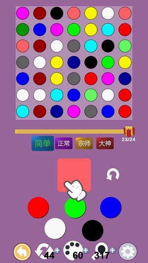 您配嗎是一款有趣的消除類游戲,玩家可以通過點擊游戲中相同顏色的球來消除球,有許多不同級別的挑戰(zhàn),前幾關的難度都比較低,后面的難度會不斷增加,游戲中有很多可用的道具,可以幫助你快速消除所有的小球,簡單的游戲玩法非常減壓,可以幫助您緩解壓力。